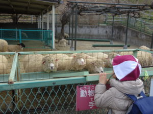 牧場には牛や羊の他、動物たちにエサをあげたり、うさぎやモルモットに触れたりできる動物園もありました。