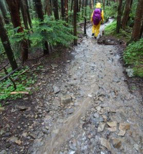 上高地に着くと、雨がポツポツ。今回の上高地も雨具着用しての出発となりました。