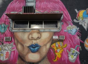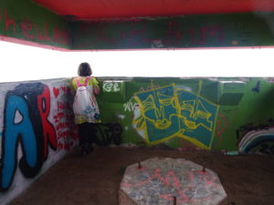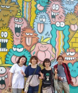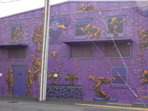 倉庫街の塀や壁面の、あちこちに絵が描かれています🎨