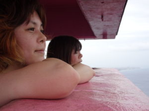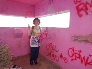 戦争中の見張り台だった建物が、今はピンクリボン運動など、 平和のシンボルとなっているそうです。