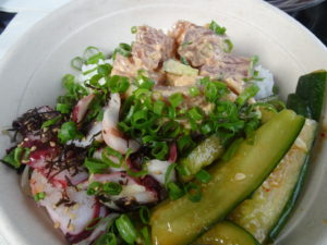 アイスクリーム店みたいに、 好きな具材をショーケースから選んで、 トッピングしてポケボウルを作ってもらって食べました。