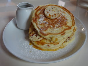 『リコッタパンケーキ』というパンケーキで、 中にリコッタチーズが入っていて、バターと、 バナナがのっていて、メイプルシロップを好みでかけて食べる!